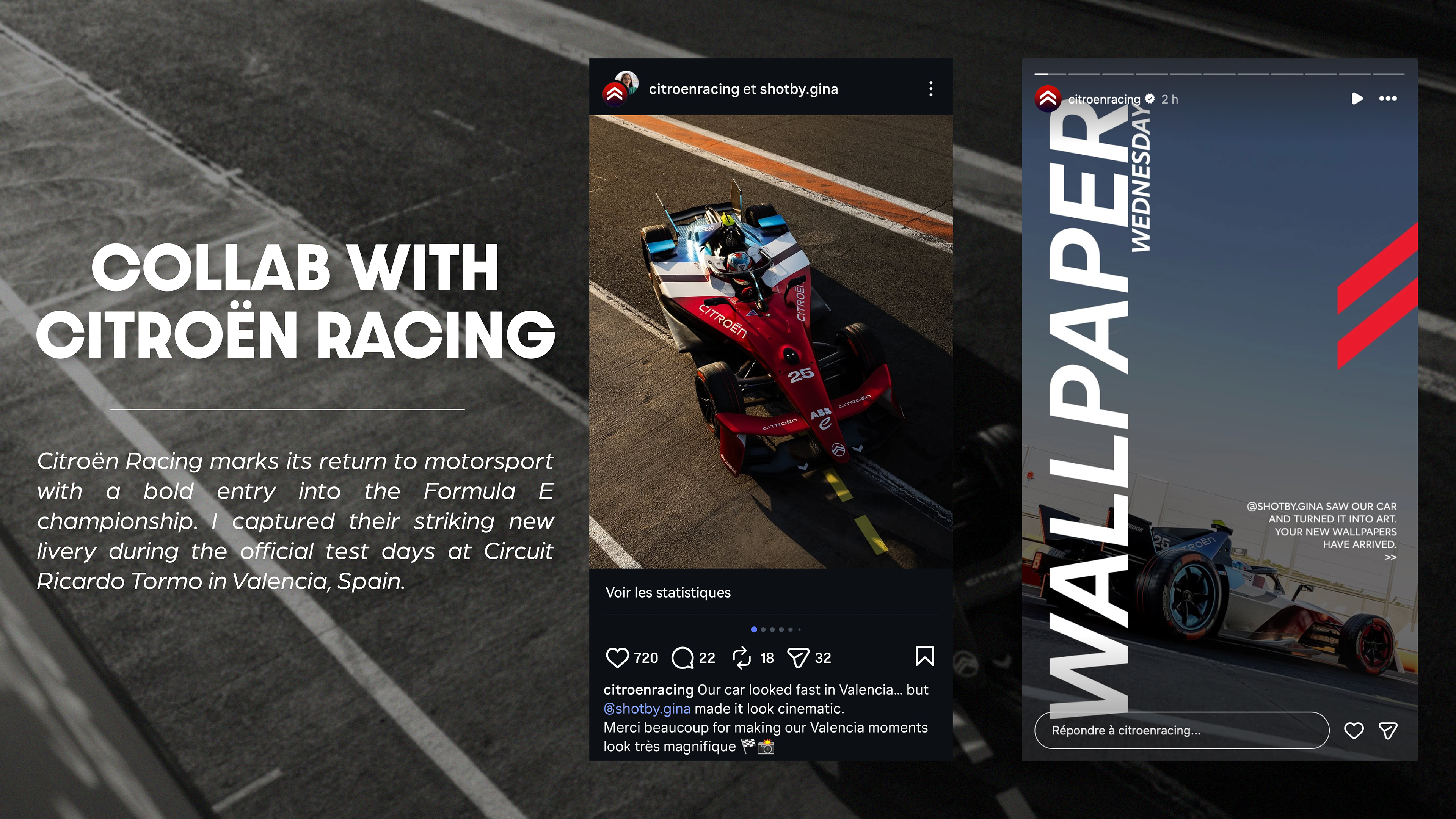 I did an Instagram collab with Citröen Racing on November 25 2025, followed by a series of aesthetic wallpaper Stories on November 26.